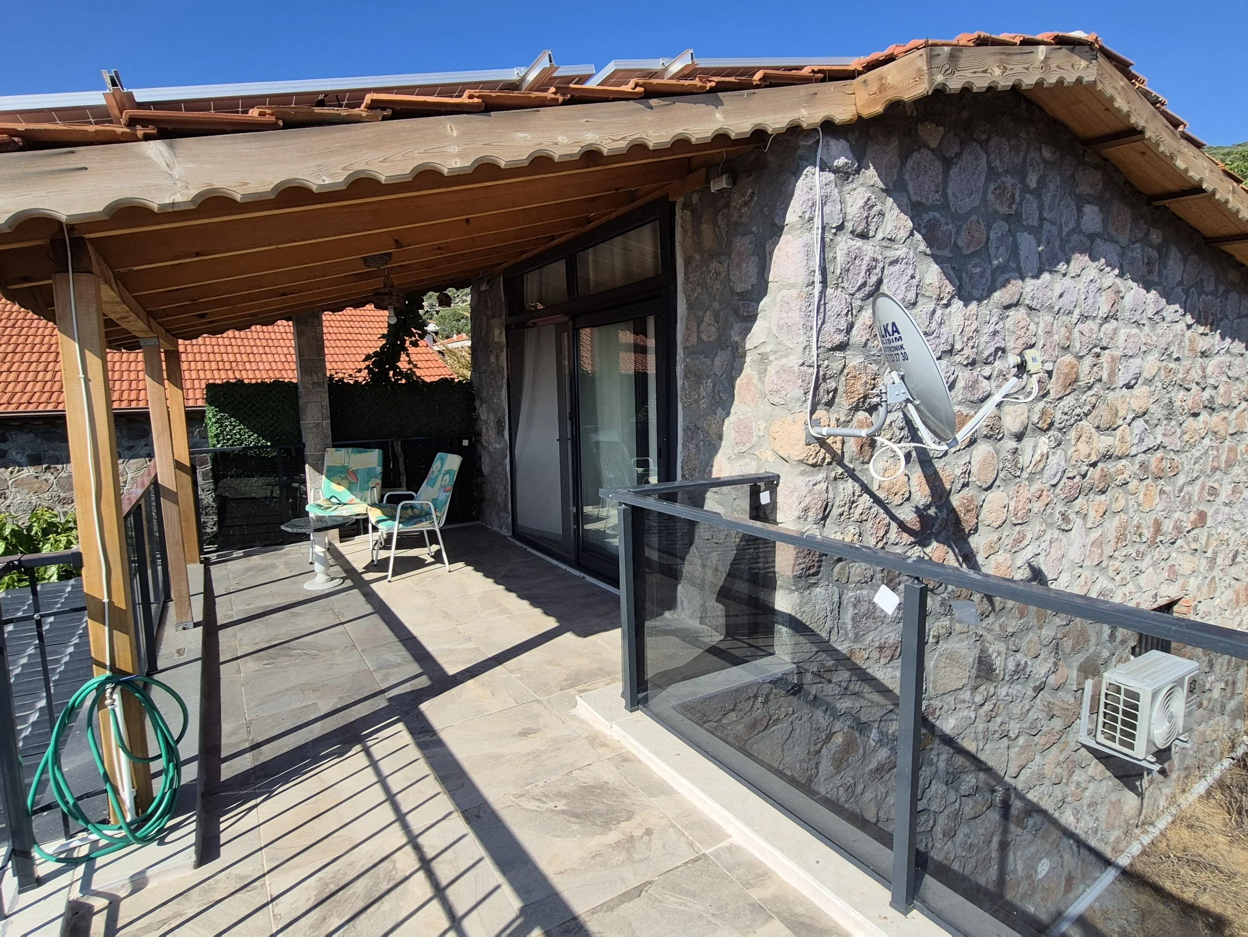 Üst katta; Ebeveyn banyolu yatak odası, Ahşap perguleli geniş teras