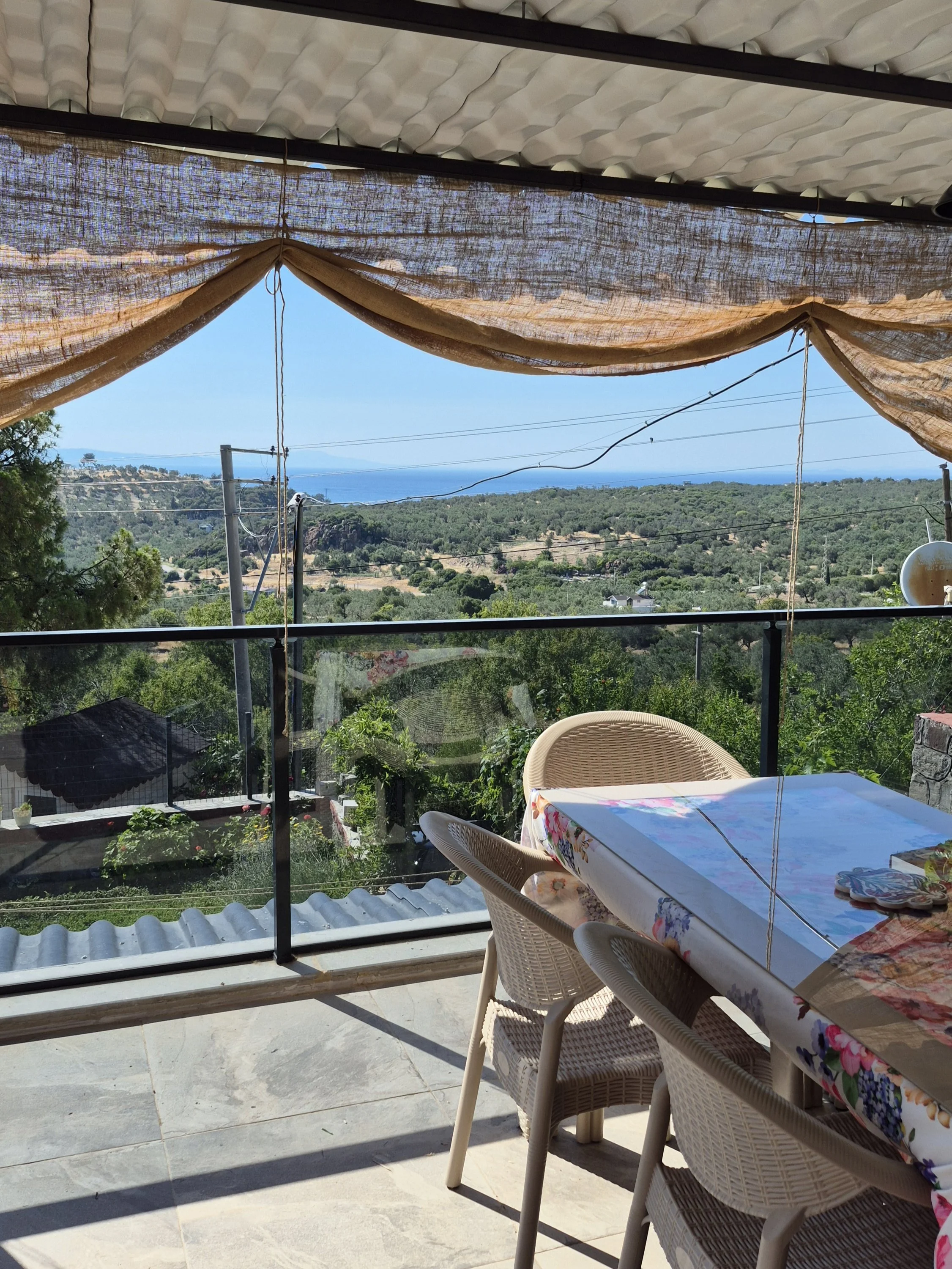 Dikilinin gözde yerleşim yeri olan Yahşibey'de huzurlu bir ortamda, deniz manzaralı bahçeli taş villa.
